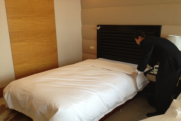 2013年4月11日14時,第三屆“勞動之星”職業技能競賽實踐操作由江泉城承辦的中式做房在江泉城客房部7樓正式啟動。本次比賽共計20名參賽選手,集團公司對比賽全程進行了現場監督。繼今日的比賽項目之后其他工種的比賽也將在近期陸續展開。