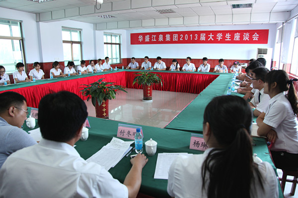 會上,首先由華盛江泉集團人力資源部主任李新勝對大學生的主要工作情況進行了簡要介紹。隨后參會大學生圍繞自身成長經(jīng)歷,結合當前基層工作情況展開熱烈討論,積極建言獻策,分別從大學生檔案的管理、企業(yè)文化等方面進行了交流探討,并提出了發(fā)展建議。各位領導針對員工在工作中的疑問和建議逐一進行了解答。座談氣氛熱情洋溢、和諧融洽,充分展現(xiàn)了公司高層領導傾聽基層心聲、注重人文關懷的管理理念和員工求真務實、敬業(yè)愛崗的精神風貌。